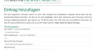 Wenn Sie auf der Suche nach einer zuverlässigen und benutzerfreundlichen Plattform sind, um MusikerInnen, Bands oder MusiklehrerInnen zu finden, dann ist Musikerdatenbank.com genau die richtige Adresse für Sie. Seit 2010 bietet diese Webseite eine umfangreiche und ständig wachsende Datenbank, die sowohl private MusikerInnen als auch professionelle Bands und MusiklehrerInnen vereint.+++… Weiterlesen