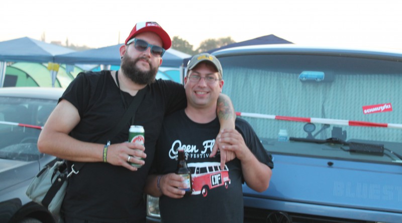 Der Drang Flüssigkeit in diesem Glutofen zu sich zu nehmen ist ein Segen für die ortsansässigen Bierdealer. Es sei ihnen gegönnt – ist ja schliesslich ein Winwin-Geschäft. Unser Lieblingsbierhof ist der von Helmut und seiner Familie. Hier hilft selbst die Oma mit und preislich ist Helmuts Saisongeschäft kaum zu schlagen. Man muss sich nur setzen und beobachten, wenn man die bunte Vielfalt des menschlichen Darstellungsdrangs geniessen möchte. Man lernt hier immer wen kennen – heute sind es Doc und Kohlo. Zwei anständige Burschen aus Hannover, die schon seit 2007 Fans des Flairs sind. Doc meint er schätze die Stimmung und das gesamte Ambiente dieser Veranstaltung, während Kohlo der festen Ansicht ist, dass das Flair das beste Festival der Republik sei. Ansichten von echten Wiederholungstätern, die wir so nur unterschreiben können. Man versteht sich gut und wir