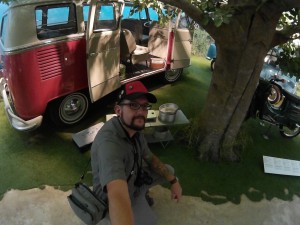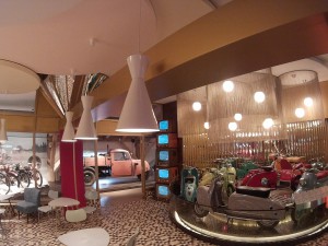 Noch hält sich die Begeisterung der Kinder in Grenzen, als wir die erste Ebene betreten. Doch dieses Museum zeigt gleich von Anfang an, dass hier jede Alterklasse zum Zug kommt. Während Papa, die Anfänge auf zwei Rädern bewundert, macht der Nachwuchs eifrig Fotos, die dann Online anhand des Codes auf der Eintrittskarte zu Hause gesichtet und heruntergeladen werden können. Wir hangeln uns durch die Stockwerke, bestaunen wunderschöne Exemplare der Motorwelt und probieren alles aus was zum Ausprobieren angedacht ist: Entdeckerhöhlen, Fahrsimulatoren, Fotostationen und geniessen einen Erbeer-Rhabarber-Milchshake in der im 50 jahre Stil eingerichtetetn Milchbar – ein echtes Highlight. Unsere „Vorrecherchen“ wiesen auf ein ganz besonders Ausstellungsstück, einen VW Bulli der ersten Generation hin. Als Fans dieses Gefährts zieht es uns natürlich magisch in die Speicher-Welt der 60er Jahre, in der