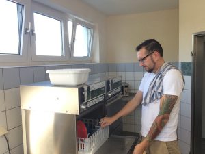 Das junge Team kümmert sich um unser Lager, während der ältere Part sich des Abwaschs annimmt. Innerhalb der Sanitäranlagen des Campingplatzes finden sich auch kleine Spülmaschinen, welche innerhalb von 5 Minuten das Geschirr wieder in den Normalzustand versetzten. Camping deluxe und ein weiterer Punkt, neben Sauberkeit und Geräumigkeit, bei dem man merkt, dass man es hier mit einem hochdekorierten Platz zu tun hat. Die frischgebackenen und knusprigen Brötchen des platzeigenen Mini-Marktes geben die Grundlage für den weiteren Tag. Pflicht erfüllt jetzt das Vergnügen: Ganze sechs Stunden geben wir uns dem Wasserspaß hin und kehren ausgehungert zum überhitzen Standplatz