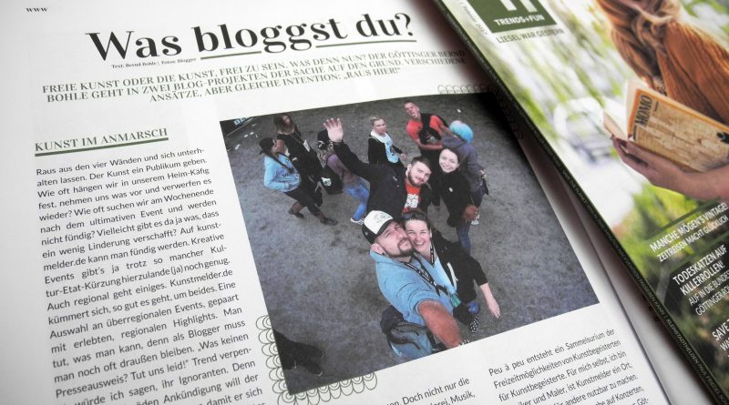 Das Göttinger Stadtmagazin „Trends + Fun“ stellt regelmäßig coole lokale Blogs vor. In der Februar-Ausgabe kam nun dem Kunstmelder-Blog diese Ehre zu. Wir fühlen uns geehrt! Also, einfach mal durchlesen und raus auf die nächsten Veranstaltungen, denn Leben heisst auch Erleben!