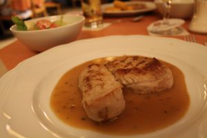 Adventure-Golf?“, schmeisse ich in die Runde. Die Kinder sind Feuer und Flamme und wir machen uns auf zur neuen Attraktion der Stadt. Wir haben Spaß und das Urlaubs-Gefühl wächst und wäschst während unser Golfball die abenteuerlich angelegten Bahnen überquert. Hungrig kehren wir zurück ins Hotel und begeben uns direkt in die Gaststube zum Abendessen. „So muss das!“, denke ich als wir die Räumlichkeiten betreten. Diese Urgemütlichkeit findet man so nur noch selten und das Personal setzt mit seiner Freundlichkeit dem ganzen noch das Krönchen auf.