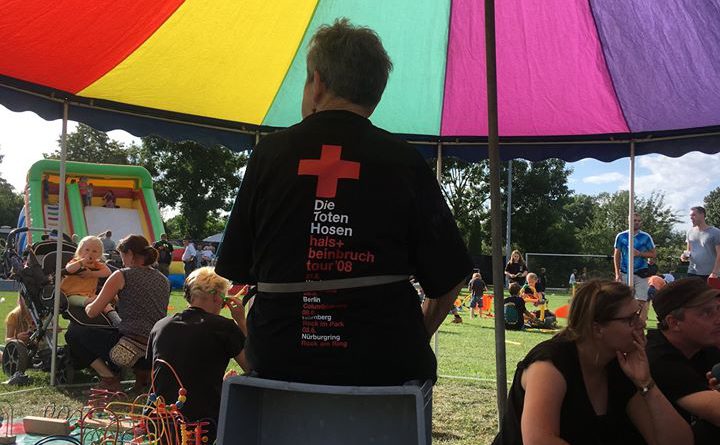 Der letzte Tag auf dem Open Flair Festival beginnt. Heute heisst es Sachen packen und noch mitnhemen was geht. Das wird nicht viel sein, denn der Job am Montag klopft schon wieder leise an die Hirnrinde. Das Wetter ist spitze und wir entschließen uns in den Schlosspark zu gehen. Hier befindet sich auch eine liebevoll aufgebaute Spielwiese für die kleinen Besucher. Karussel, Riesenmurmelbahn und auch Musik für die spielenden Kinder von der Bühne. Mega gemütlich und so von uns noch nie wahrgenommen. Wieder ein Punkt für die Organisatoren, die einfach wissen wie man ein generationenübergreifendes Event organisiert. Um 14:30 sind wir zu einem „Secret Gig“ von „Kind kaputt“ in der kleinen Freiheit geladen. Die Location ist einen Art Wunderland für Jugendliche. Lampenschirme hängen von den Bäumen und viele kleine lustige Details machen den Aussenbereich zu einem echten Erlebnis. Die Band fängt verspätet an das kellerartige Verließ zu beschallen. Tolle Lokation, klasse Musik nur leider ohne Gehörschutz schwierig. Meine Schuld! Gerade ich, der sich mit der eigenen Band in so einem Bunker die Ohren weggebraten hat. Dennoch, Hut ab „Kind kaputt“, geile Mugge und tolle Aktion! So langsam müssen wir Richtung Heimat, wollen aber noch einmal zum Abschiednehmen auf das Werdchen. Während „Yungblud“ leicht Ska-infiziertt und wie Edward mit den Scheerenhänden von der Freibühne performt sagen wir „Good Bye, liebevollstes und familienfreundlichstes aller Open-Air-Festivals! Nächstes Jahr geht es weiter!“. Und Zack, Abschiedsträne wird von Freudenträne abgelöst!