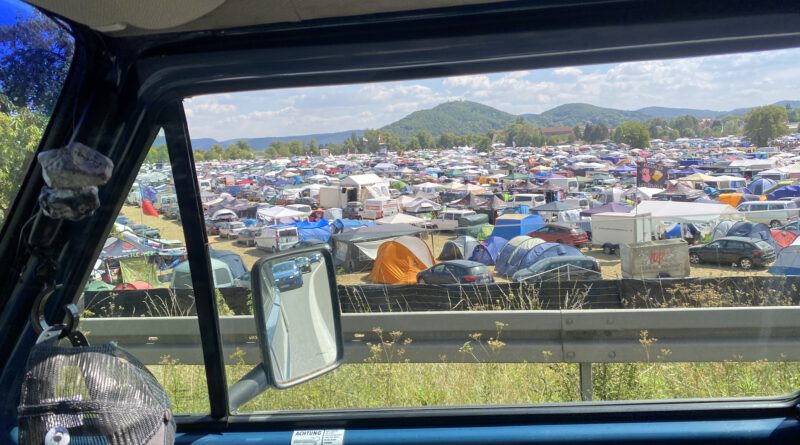 Trompete, die wie Synthesizer klingen ist schon beeindruckend. Ein Auftakt der sich absolut gelohnt hat. Tradition hat hier auch die gute Laune der Security vor den Bühnen. Immer freundlich, witzig und gern mal eine Abkühlung verschaffend, wissen diese Frauen und Männer nebenher zu begeistern. Der Tipp eines Freundes bringt mich auch dazu die mir die Band Rogers anzuschauen. Sympathischer Punkrock, der durch den Körper geht. Die Jungs aus Düsseldorf haben das Publikum fest im Griff als sich die Sonne langsam am Horizont verabschiedet. Für mich nach reichlich gelaufenen Kilometern auch der Zeitpunkt die Segel zu streichen und in meinen Van zu verschwinden. Ich bin gespannt, was der zweite Tag so bringen wird. Schön wieder zu Hause zu sein.
