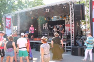 Die Sonne, die gelaufenen Kilometer und die ausgelassene Stimmung haben ihre Spuren hinterlassen. Ich brauche eine Erfrischung. Die nahe gelegene Werratal See bietet genau das. Nach einem kühlen Bad fühlt sich mein Kopf wieder klarer an und ich bin bereit mich erneut in das Reigen zu schmeißen. Auf dem Weg durch die Gassen, lockt mich die Band Mac Cormic zur Hof Bühne am E-Werk. Sehr sphärisch kommen die Jungs daher und lassen mich in dieser wabernden Lavalampen-Atmosphäre verweilen.