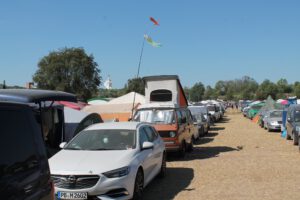 Die Sonne lässt den Van ab 8:00 Uhr wieder so aufwärmen, dass an ein weiterschlafen nicht zu denken ist. Aber ich habe gut geschlafen, obwohl die Nächte doch sehr kalt sind und ich das Lied der Puffmutter Leyla auch in meinen Träumen nicht ganz wieder los geworden bin. Ballermann Hits bleiben oft ungewollt hängen. Das Gute Line Up am heutigen Tag wird dieses ungewünschte Überbleibsel aber mit Sicherheit wegwischen. Bevor jedoch gute Musik angesagt ist, begebe ich mich auf einen Rundgang über die