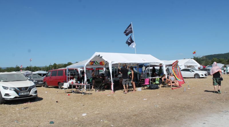 Campingplätze. Hier trifft man auf viele kreative Anarchie, die sich in den Outfits, den Camps oder den Autos widerspiegelt. Ganze Thekenlandschaften kommen unter den Pavillons zum Vorschein. Bierpong, Flunkyball und Fallus-Bilder auf den staubverhangenen Autoscheiben dürfen natürlich auch nicht fehlen. Spontan werde ich zu einer Hochzeit eingeladen, die am See stattfinden soll. An Ideen mangelt es den Besuchern hier wahrlich nicht. Faszinierend für mich auch die vielen Vans und Wohnmobile, die hier zu finden sind. Ich kann mich noch gut daran erinnern, als diese vor Jahrzehnten noch hinter dem