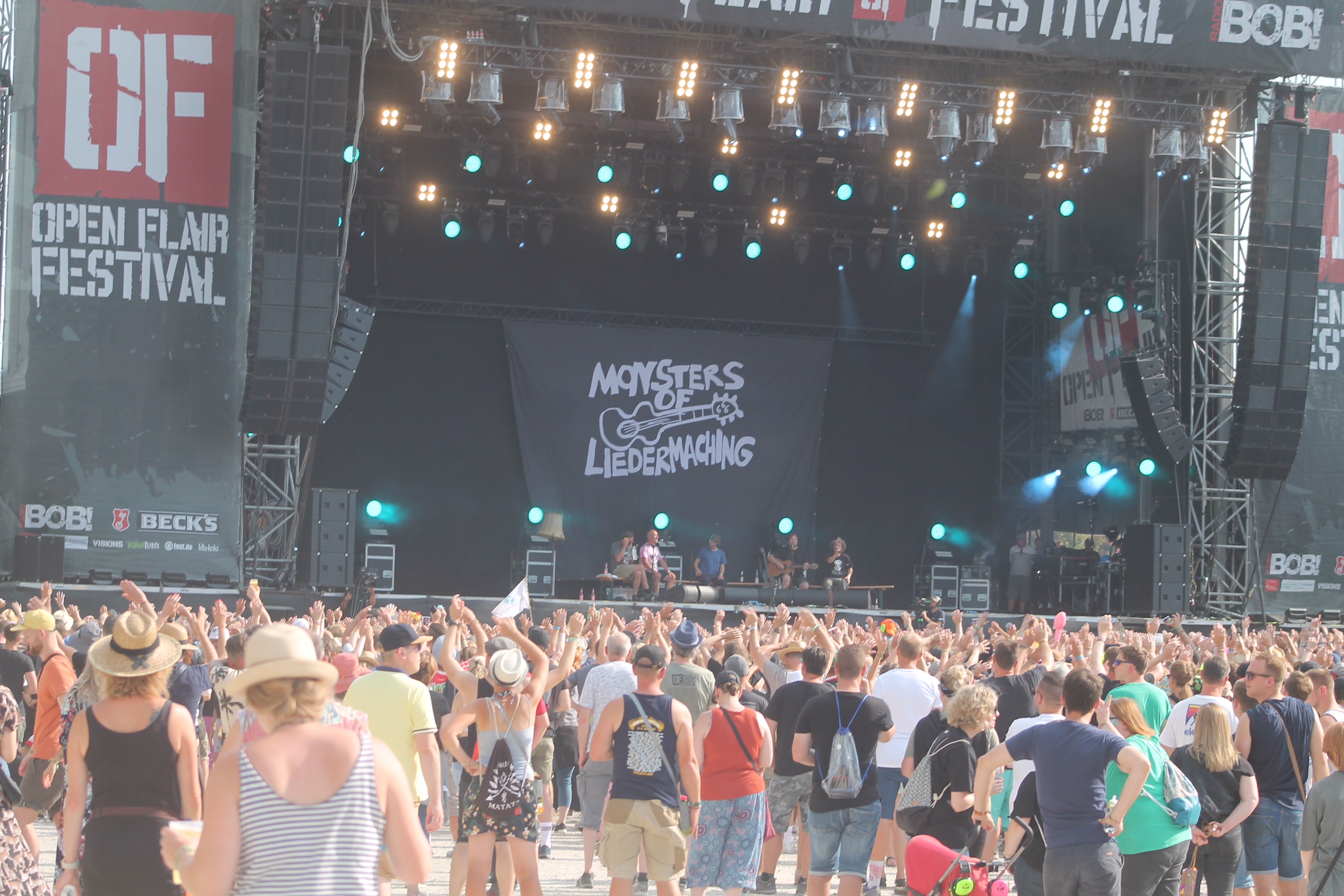 Insel des Herzens. Die Monsters of Liedermaching spielen gerade auf der Hauptbühne und lassen die Massen bei ihren Hits aus dem realen Leben ordentlich mitsingen. Flair-Kult seit 19 Jahren und einfach nicht mehr wegzudenken. Die Indie-Rocker von Ash aus UK übernehmen und beweisen, dass sie seit Jahren zu den besten des Genres gehören. Es folgt die Pop-Punk Band City Kids Feel The Beat.