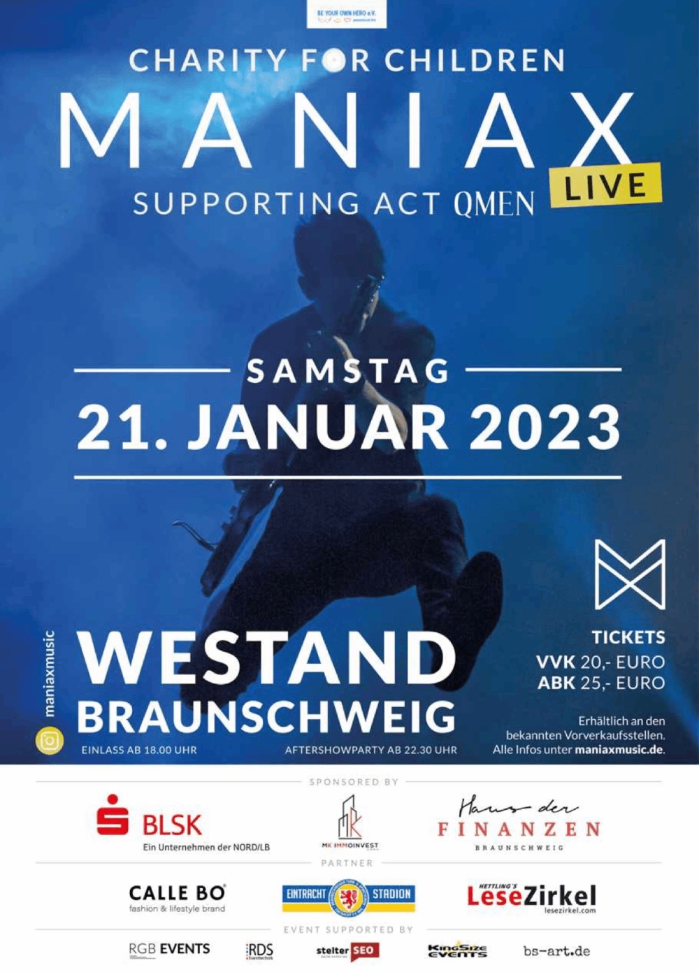 Stattfinden wird dieses Mega-Event am Samstag, dem 21. Januar 2023, im braunschweiger WESTAND. Der Einlass beginnt um 18.00 Uhr. Die Tickets, die an allen bekannten VVK-Stellen und online erhältlich sind, kosten nur 20,- Euro im Vorverkauf und 25,- Euro an der Abendkasse.