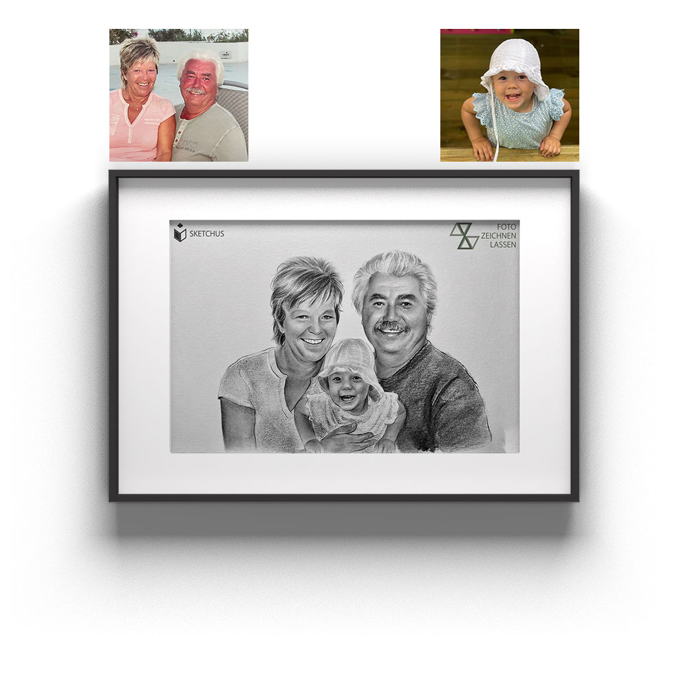 Familienportrait nach Fotovorlage zeichnen lassen bereits ab 49€.