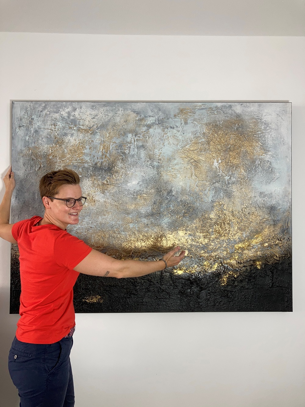 Die Kunst half ihr, sich von ihrem stressigen Bürojob zu lösen. Trotz der schwierigen psychischen Situation, die sie bis heute stark beeinflusst, konnte sie sich ein neues Standbein mit der abstrakten Kunst aufbauen, um sich auf etwas Positives zu konzentrieren. Durch die Kunst kann sie in eine andere Welt eintauchen und den Stress des Alltags und ihrer Erkrankung vergessen. „Ich fühlte mich endlich wieder frei“, sagt sie.