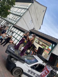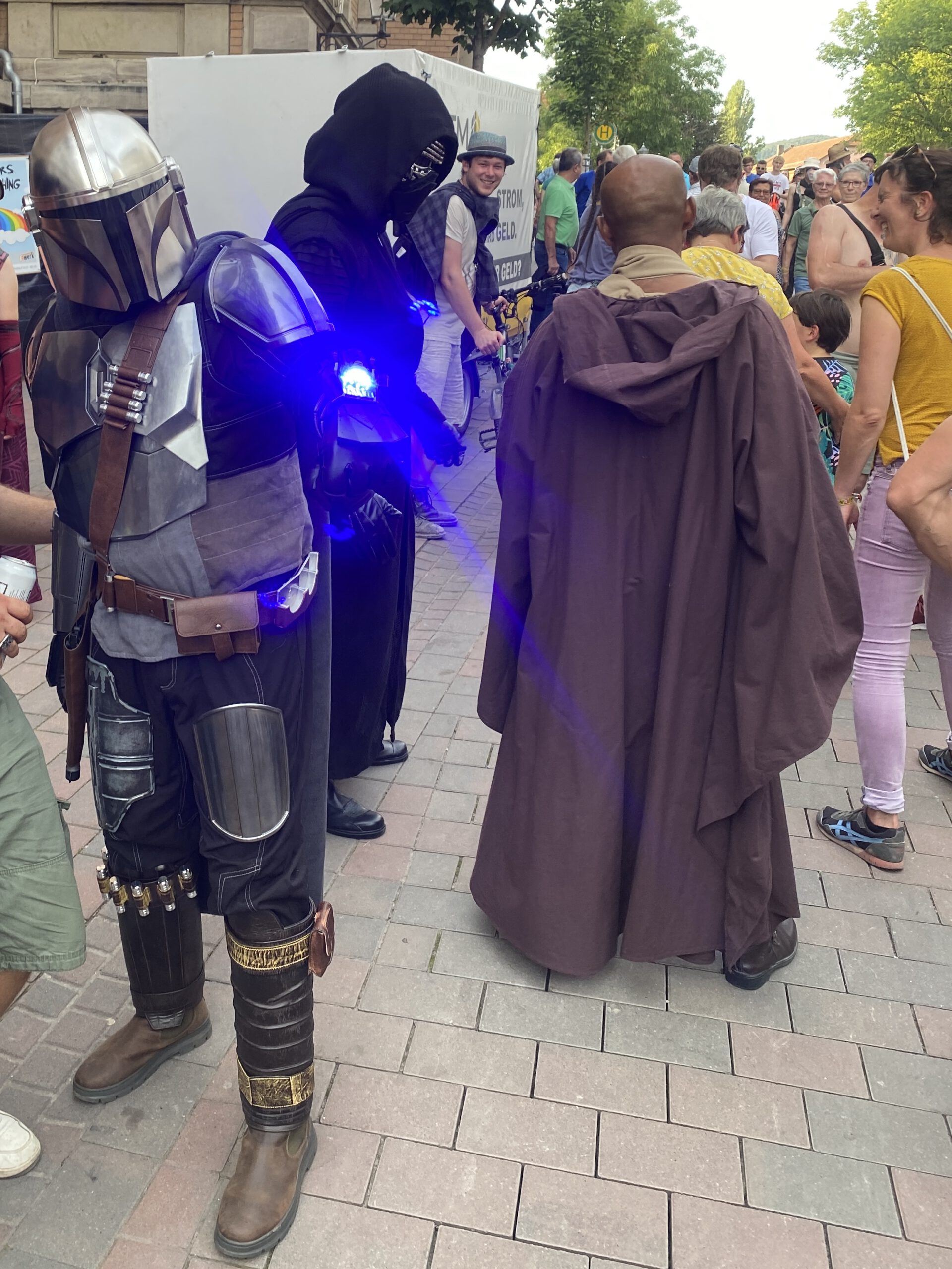 voll und ganz auf dem Flair überzeugen. Die Ansagen im feinstem britischen Englisch lassen kaum vermuten, dass diese Band aus dem Hochsauerland stammt. Selbst unsere vierjährige Tochter bringt der Beat zum nicken, aber sie gibt auch wie immer an diesem Wochenende ihren eigenen Takt vor. Ihr Wunsch noch einmal die aufgeheizten Gassen von Brückenhausen durchstreifen wird ohne zu zögern in die Tat umgesetzt. Die Walking Acts wie das kleine Feuerwehr-Auto von „Picco Bello“, sowie Schauspieler in diversen Star Wars Kostümen hinterlassen bei dem Kind einen bleibenden Eindruck. Irgendwann merken wir jedoch,