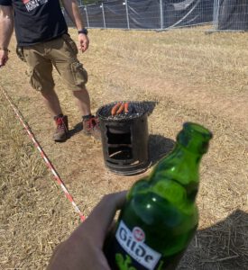 überbrücken, begebe ich mich auf den Campingplatz, um meinen Freund Andi zu besuchen. Der hat zum Grillen geladen und wir lassen es uns bei Käse-Krakauer und einem kalten Bier richtig gut gehen. Bei dem heißen Wetter wird die Möglichkeit sehr rege wahrgenommen, sich im nahegelegenen See Abkühlung zu verschaffen. Menschen mit allerlei Badeutensilien laufen an uns vorbei – Vielleicht das Beste was man bei diesen Temperaturen zunächst machen kann. Aber auch musikalisch hat der Tag reichlich zu bieten. Noch bevor ich meine Familie in Empfang nehme gönne ich mir eine fette Portion des „Lumpenpacks“. Früher als Duo eher auf den kleinen Bühnen unterwegs, bringen die beiden nun mit kompletter Band das Publikum dazu ihre Gassenhauer mitzusingenden. Eine beachtliche Entwicklung, die echt nach Vorne
