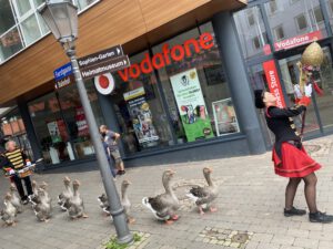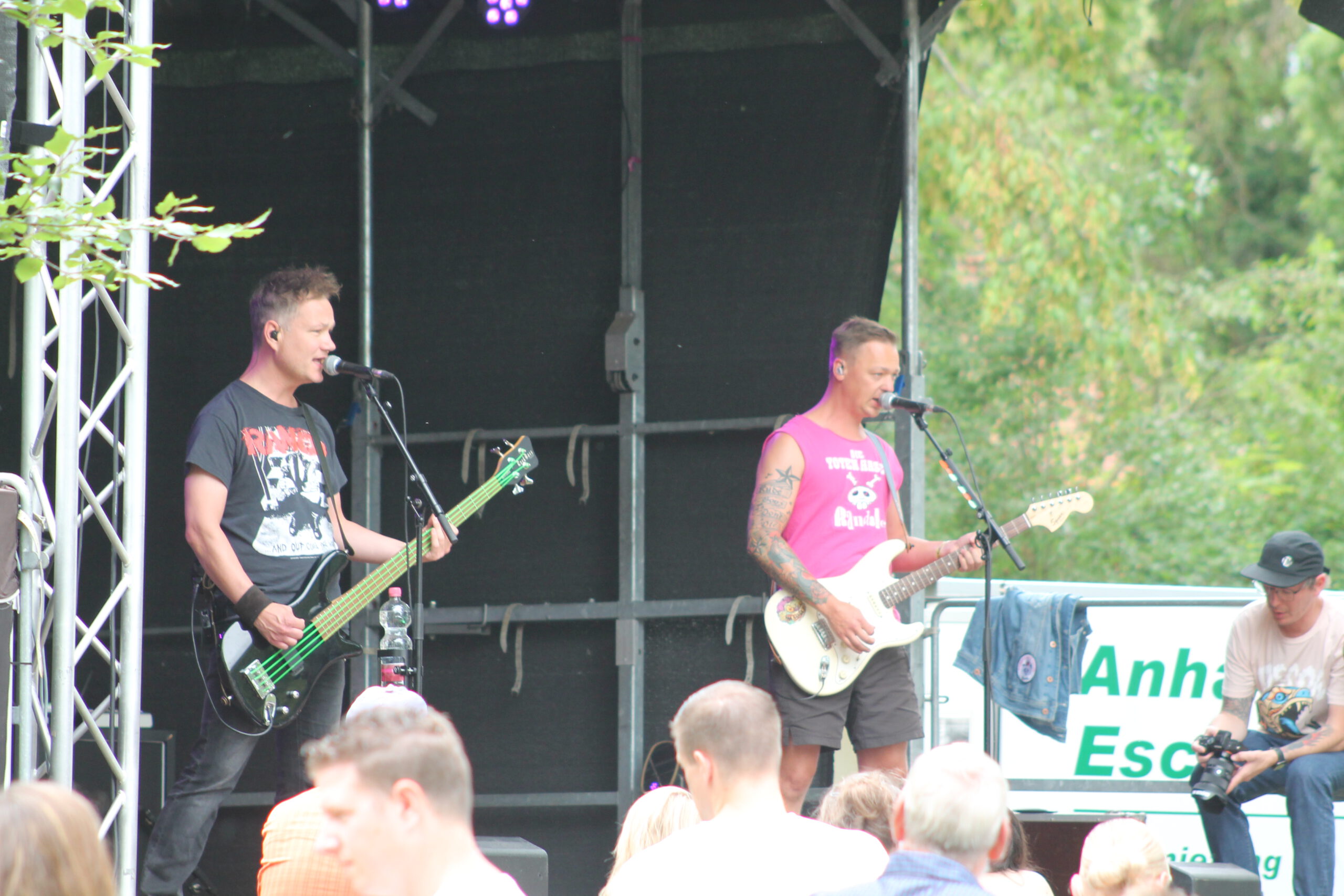 Vorgeschmack zieht die Gänsekapelle an uns vorbei. „Eine einzigartige Kombination zwischen Mensch, Tier und Musik basierend auf einer uralten Tradition des Gänsehütens“, wie es so schön in der Presseinfo heisst. Tradition passt, denn jedes Jahr zieht diese Attraktion in Eschwege verdientermaßen viele Blicke auf sich. Das Kind drängelt in Richtung Spielfeld. Heute fallen offensichtlich alle Hemmungen und von der Hüpfburg, über das Kinder-Schminken , bis zum Bungee-Trampolin wird fast alles mitgenommen. Ich schaue mir indes die Band „Kensington Road“ aus Berlin auf der Hauptbühne an. Passt auf jeden Fall perfekt um auch noch die letzten Feierwütigen musikalisch sanft aus