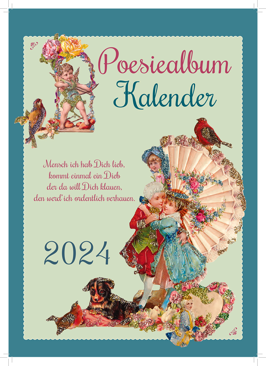 Bei der Recherche stellte Sie fest, dass solch ein Kalender noch nicht existiert. Es gibt Poesiealbumkalender auf dem Markt, doch diese sind oft eine Sammlung von Sprüchen, manchmal mit einem digitalen romantischen Bild versehen, jedoch ohne die typischen Glanzbilder und stets digital entworfen. Im Originalstil der Poesielaben gab es weltweit noch keinen Kalender.