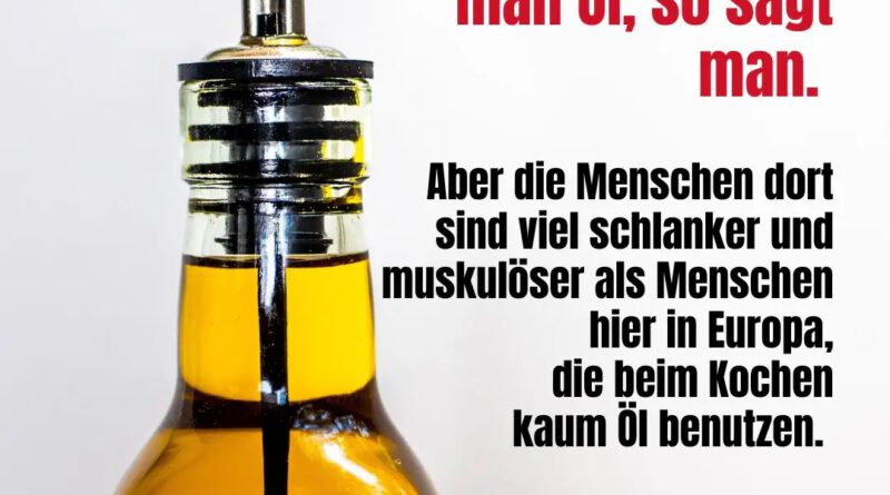 pruch des Tages: In Kamerun „trinkt“ man Öl, so sagt man. Aber die Menschen dort sind viel schlanker und muskulöser als Menschen hier in Europa,die beim Kochen kaum Öl benutzen.