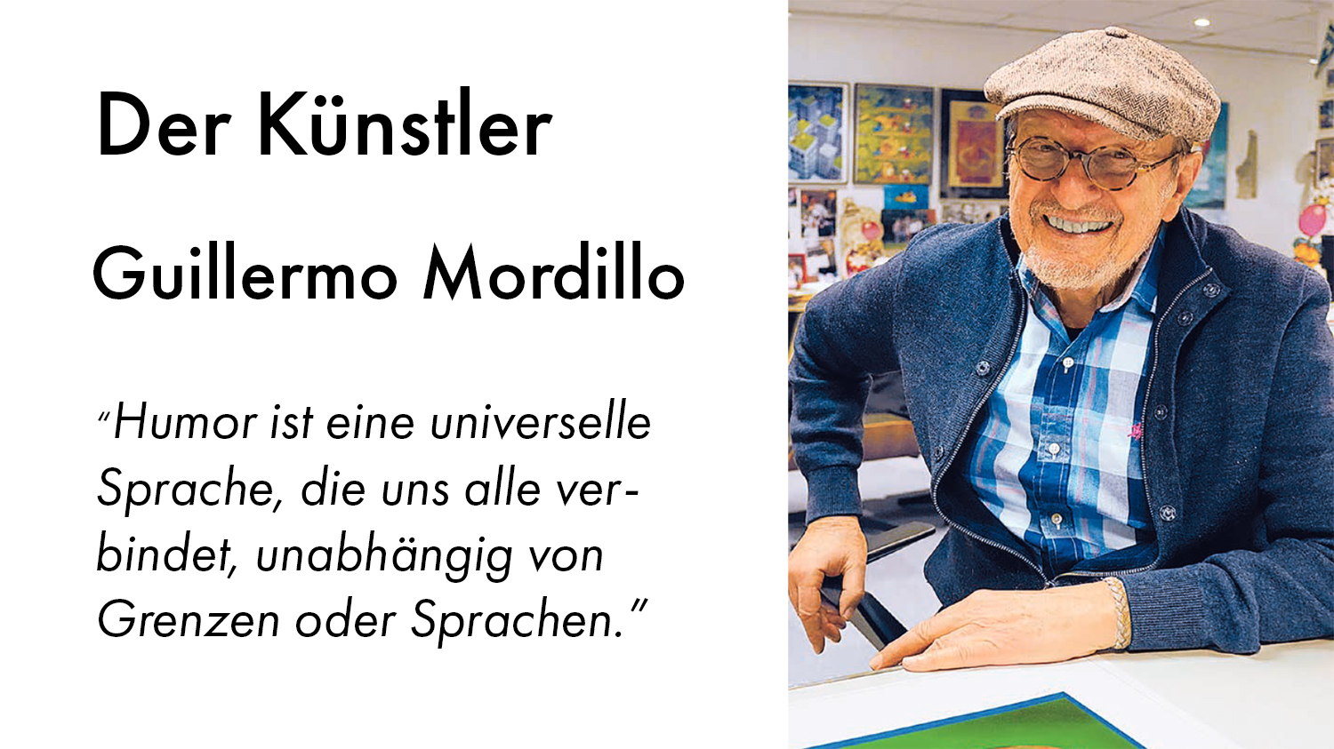 Guillermo Mordillo’s einzigartige Knollnasenmännchen, pulsierende Farbpalette und ausdrucksstarke Darstellungen von Liebe, Fußball, Golf und surrealen Szenarien spiegeln eine Meisterschaft wider, die gestalterische Einfachheit mit einer tiefen Bedeutung verwebt. Über Jahrzehnte hinweg entwickelte sich seine Kunst, geformt durch lebenslange Erfahrungen und künstlerische Reife. Dies ist die Chronik eines Lebens, das der Leidenschaft des Zeichnens von frühester Kindheit bis ins hohe Alter von 84 Jahren folgte.