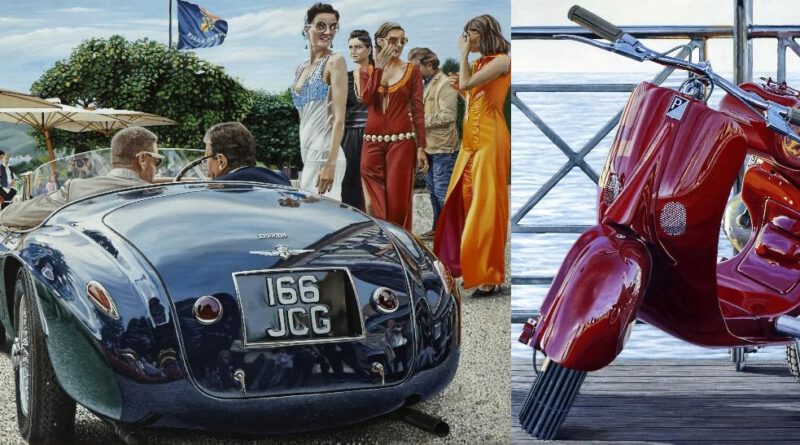 Seine Begeisterung für die Vespa und seine Liebe zu hochwertigen Edelkarosserien bringt der italienische Künstler Enrico Ghinato in seinen hyperrealistischen Arbeiten mit höchster malerischer Präzision zum Ausdruck.