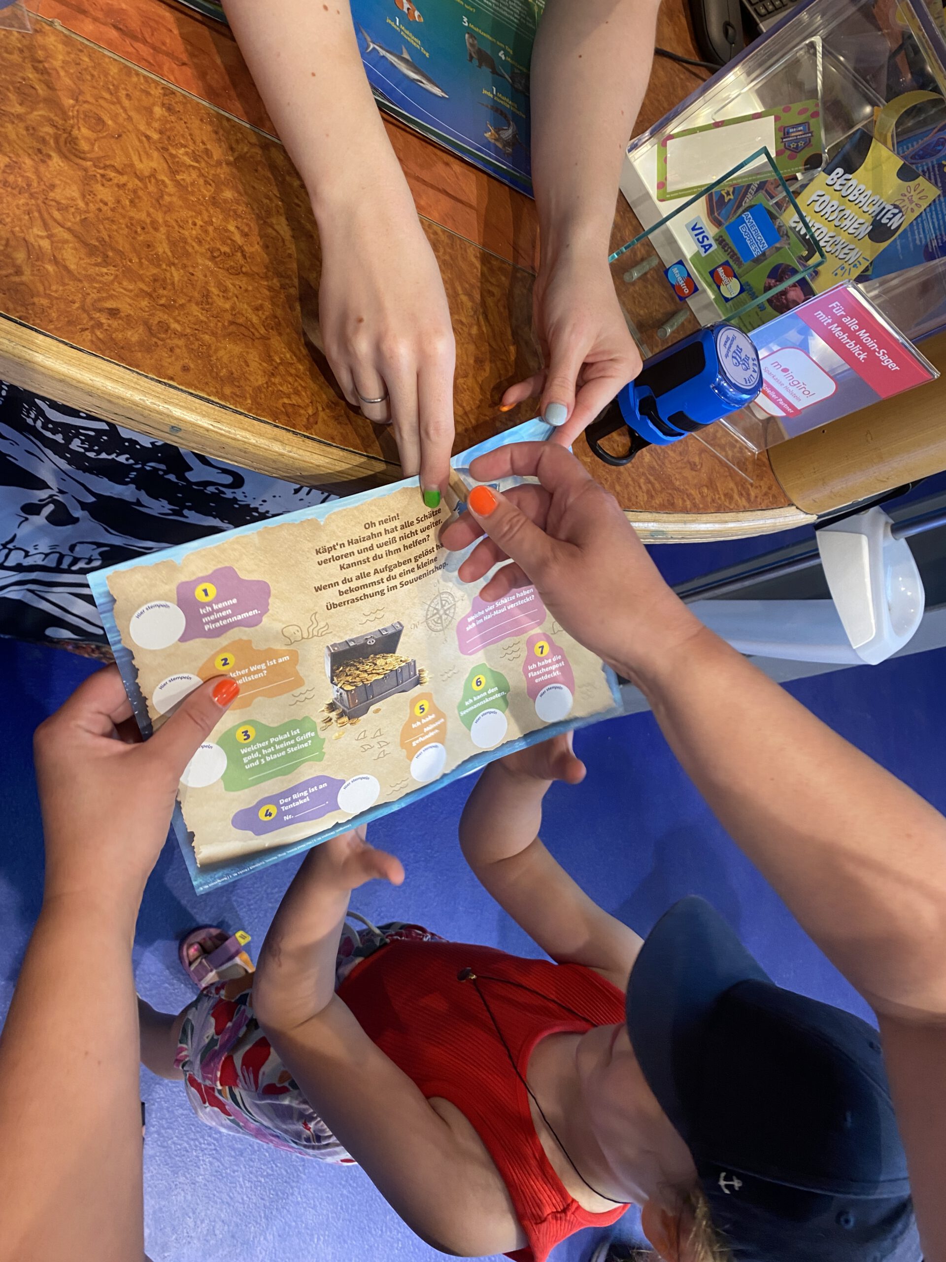 Auch die Zerbrechlichkeit dieses Ökosystems schwingt bei aller Begeisterung ständig mit. Beabsichtigt, denn nur wer darum weiss kann sich auch für dessen Erhaltung einsetzen. Noch schnell eine der spannenden Live-Fütterungen erleben, am interaktiven Erlebnisbecken eine echte Anemone berühren und dann hinauf in den Souvenir-Shop die Belohnung für den Piraten-Parcours einsacken.