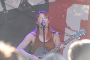 noch mal über das Campinggelände flanieren. Ich mag diesen Gewollten Ausnahmezustand so sehr. Schön dass alle Besucher bei diesen Temperaturen die Möglichkeit haben im nahe gelegenen See eine Abkühlung zu finden. Pünktlich um 17:30 Uhr finde ich mich auf der Hof-Bühne ein, um eine Sängerin zu bewundern, die mich letztes Jahr zu Tränen gerührt hat. Die Lokalmatadorin heißt „Denise“