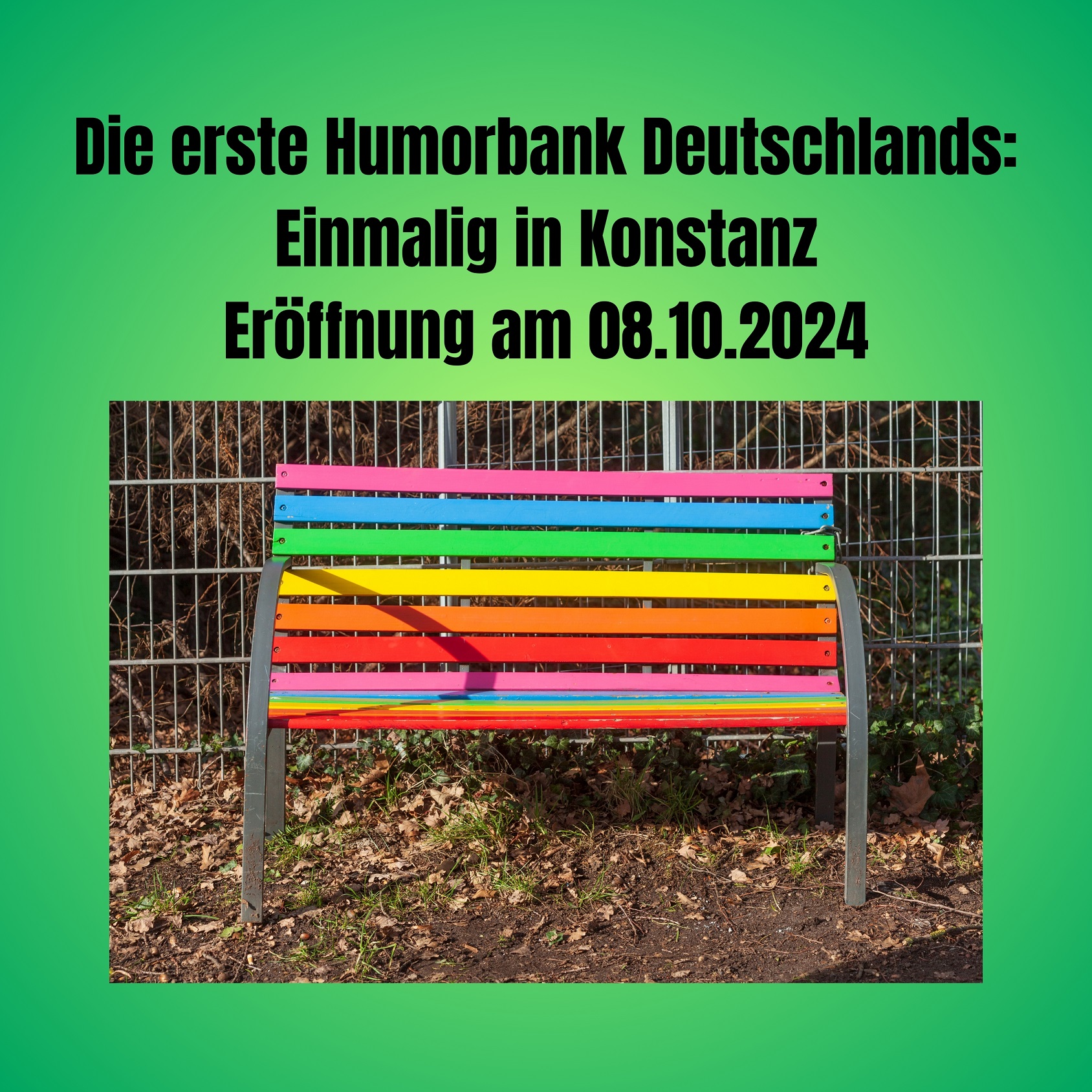 Am 8. Oktober 2024 ab 15:30 Uhr wird in Konstanz am Konzil/ Stadtgarten die erste Humorbank Deutschlands feierlich eröffnet.