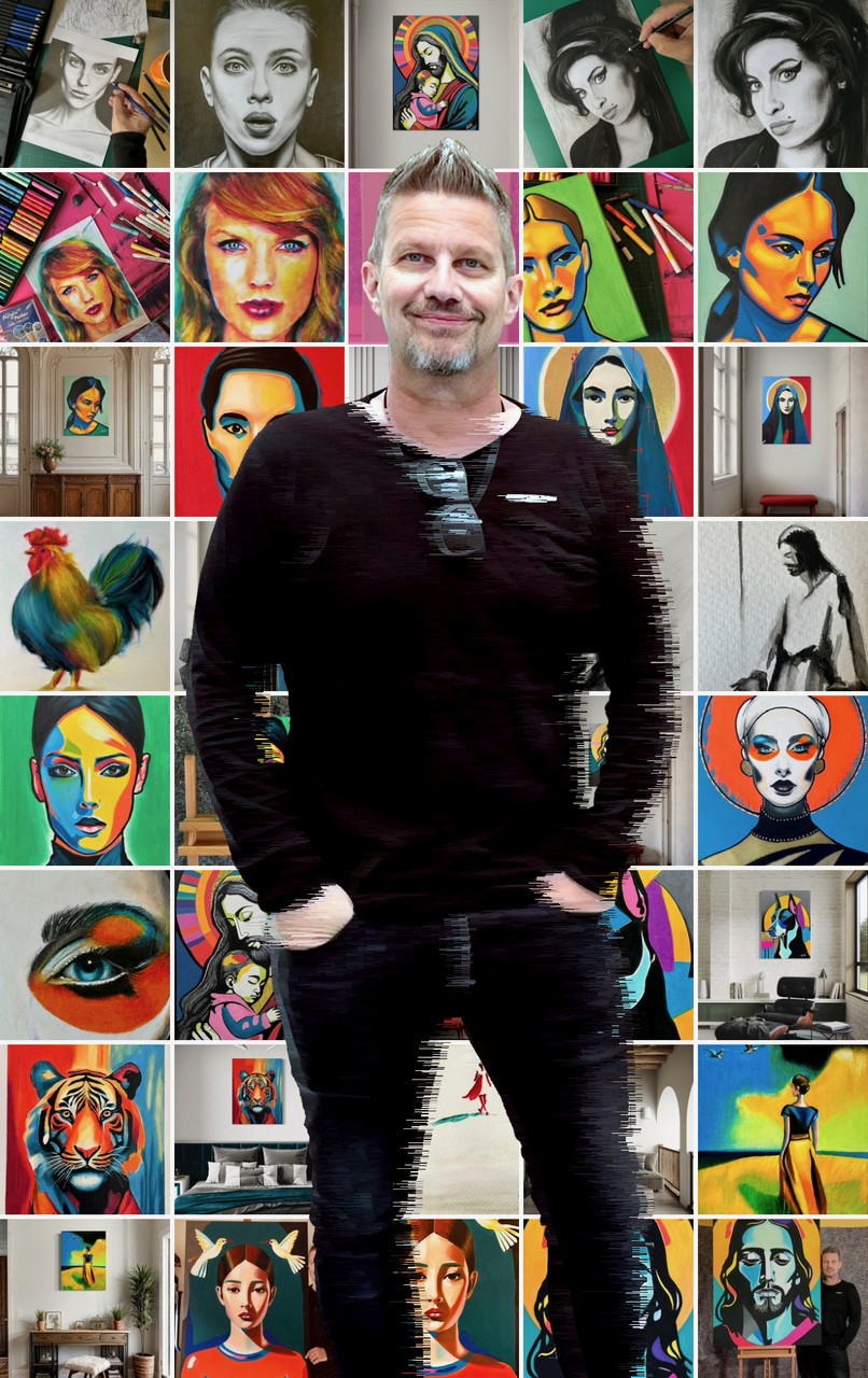 Die Werke von ROSSI zeichnen sich durch kräftige Farben, dynamische Kompositionen und tiefgehende Gefühle aus. Mit einem unverkennbaren Stil, zeitgenössischer Ästhetik und Mixed-Media-Techniken zieht der Künstler die Betrachter in seinen Bann. Die Gemälde erkunden Themen wie die Beziehung zwischen Mensch und Umwelt, Sinnfragen, Menschenwürde, Populärkultur, Momente der Stille und Reflexion.