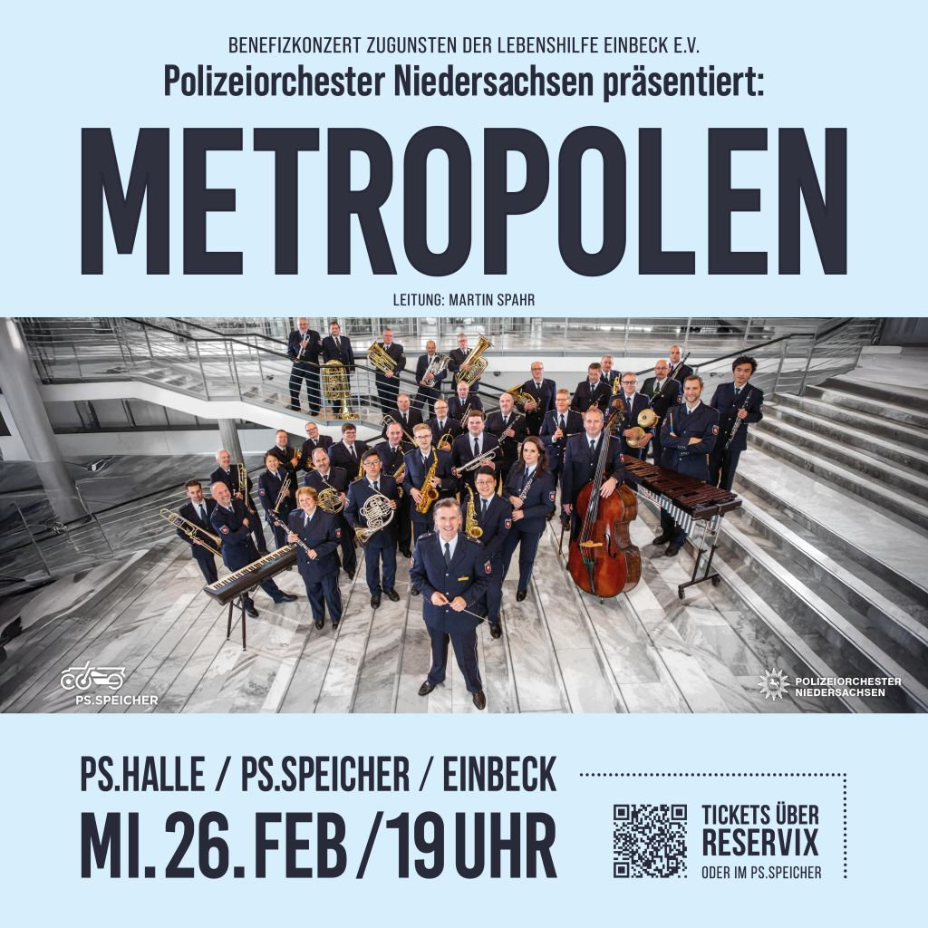 Unter dem Titel „Metropolen“ nimmt das Polizeiorchester das Publikum mit auf eine faszinierende musikalische Reise durch große Städte der Welt: Von Berlin und Wien über Kopenhagen und Amsterdam bis nach Bangkok, New York und Mexiko-City. „Metropolen“ vereint Werke aus verschiedenen musikalischen Epochen, Regionen und Stilen. Das Repertoire reicht von klassischen Kompositionen bis hin zu modernen Arrangements aus Pop und Rock. Das Programm zeigt die Kontraste zwischen den unterschiedlichen Kulturen und Lebenswelten und hebt zugleich die universellen Gemeinsamkeiten hervor, die diese Städte miteinander verbinden.