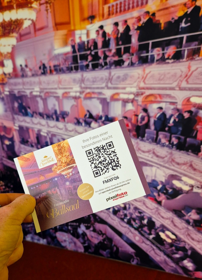 Dieses Jahr sind wir mit sechs Fotografen und ihren Assistenten vor Ort, um in unseren Fotostudios bei der Garderobe perfekte Erinnerungsbilder für die Gäste zu erstellen. Zudem erhalten die Gäste einen speziellen QR-Code, mit dem sie ihre Bilder wenige Minuten später in ihrer persönlichen Galerie finden können. Wir freuen uns auf einen weiteren unvergesslichen SemperOpernball!