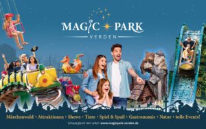 Der Magic Park Verden ist ein regionaler Themenpark, der besonders Familien mit kleinen Kindern ein abwechslungsreiches Erlebnis bietet. Der Park entführt seine Besucher in eine märchenhafte Welt voller Trolle, Feen und Zauberer und bietet eine Mischung aus aufregenden Fahrattraktionen, kinderfreundlichen Angeboten und faszinierenden Zaubershows. Im Magic Park Verden können Familien die Natur genießen und gleichzeitig in eine Welt voller Abenteuer eintauchen. Der Park legt großen Wert auf Nachhaltigkeit und Regionalität und ist zudem mit umweltfreundlichen E-Ladesäulen für Elektrofahrzeuge ausgestattet. Der Magic Park Verden ist bequem über die A27 zu erreichen und ideal für einen Tagesausflug mit der ganzen Familie.