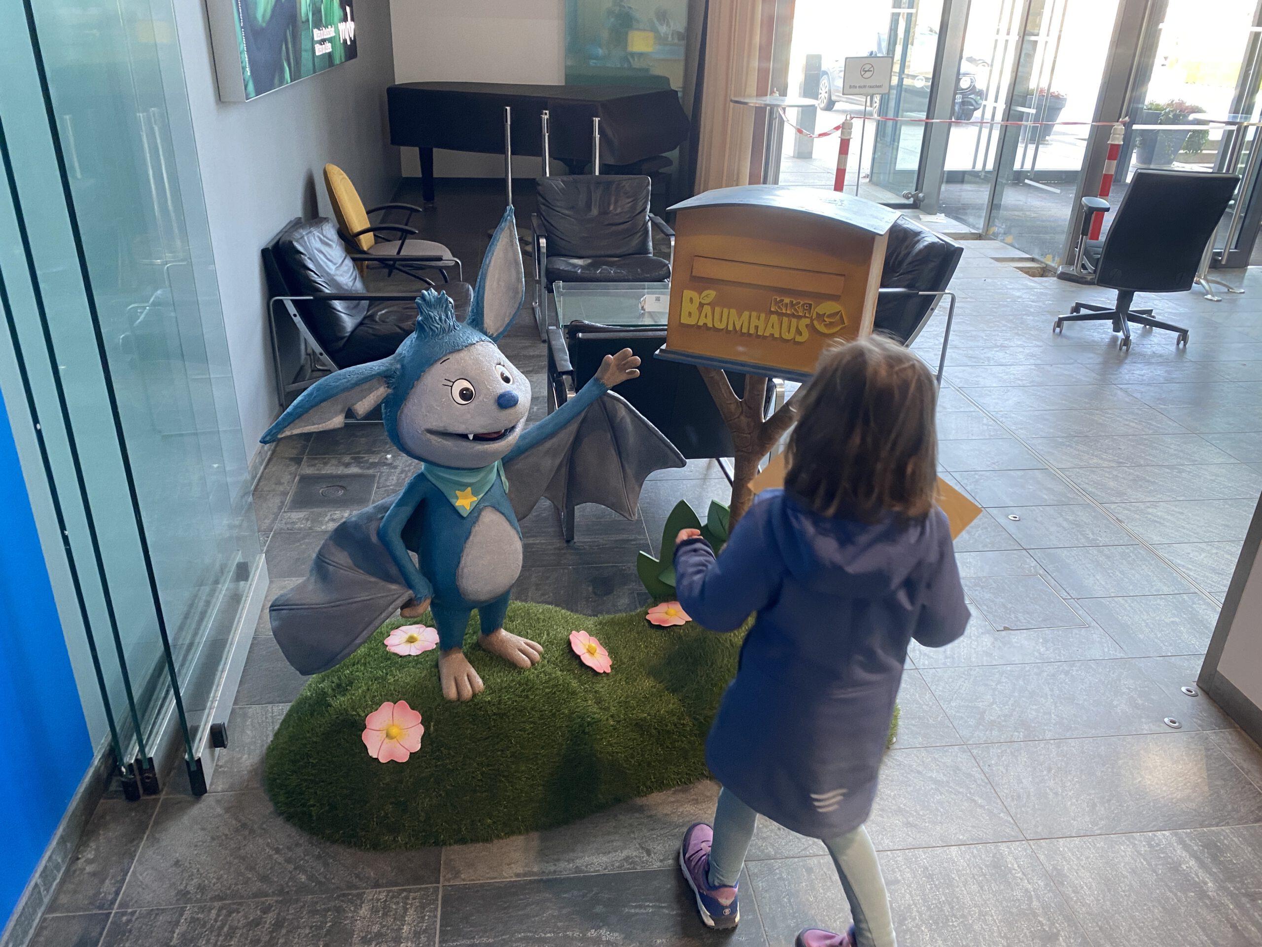 bestens vorbereitet. Obwohl Samstag ist, gewährt man uns Einlass und Ida kann ihr Bild persönlich in den entsprechenden, von der Fledermaus Fidi bewachten Briefkasten einwerfen. Ein verstohlener Blick in eines der Studios und wir verlassen zufrieden den Hort der Kinderträume. Doch in der Messehalle
