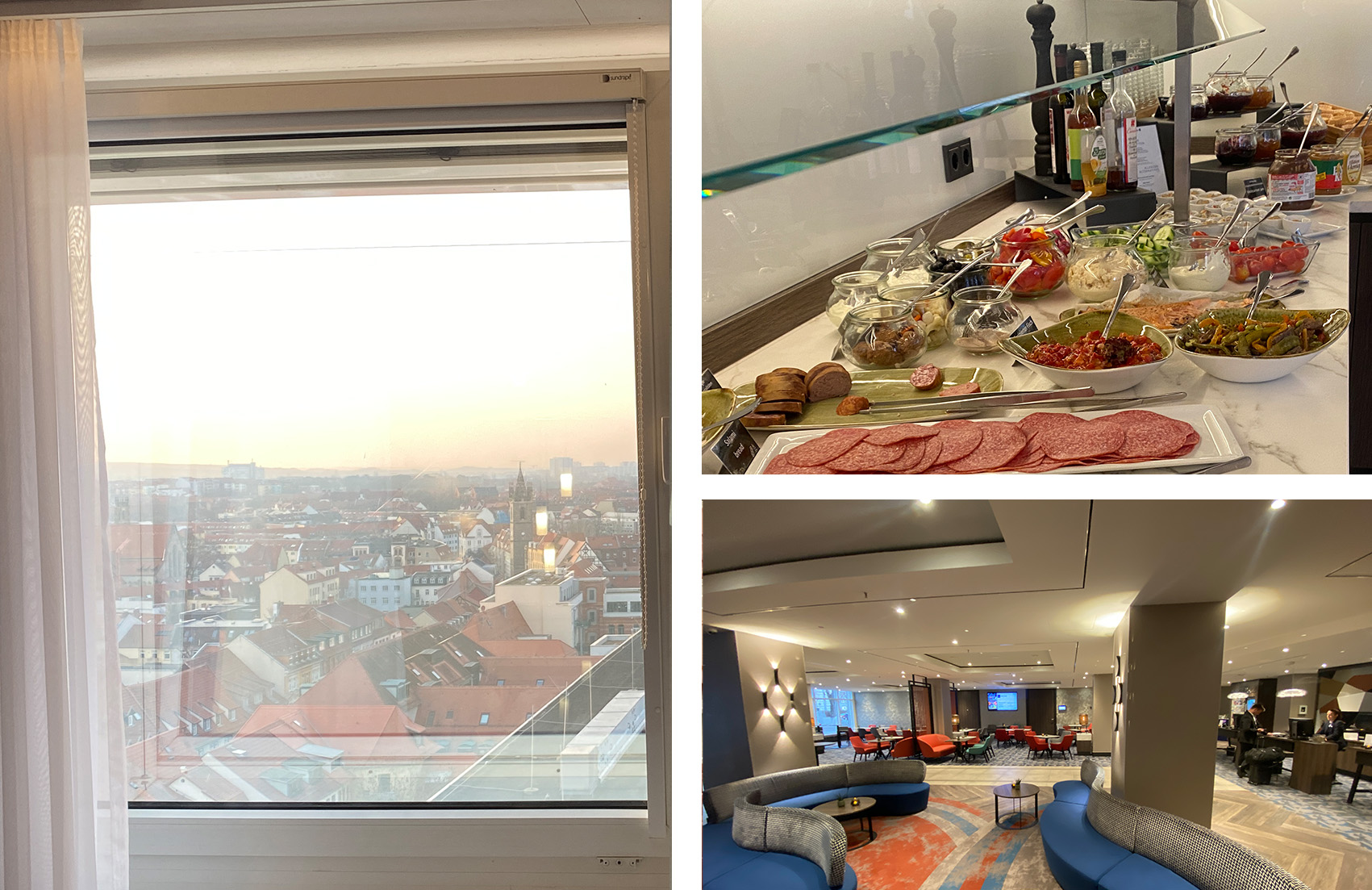 Erfurt befindet sich ideal im Zentrum der Stadt und ragt sage und schreibe 60 Meter hoch über der Stadt. Unser Zimmer befindet sich im 12. Stock mit einer unglaublich schönen Aussicht auf die Stadt. Das Haus beherbergt 284 stilvolle Gästezimmer und Suiten mit allen modernen Annehmlichkeiten wie Zimmerservice und High-Speed-Wi-Fi. Ein sehr guter Ausgangspunkt für unsere weiteren Exkursionen. Der Hunger will gestillt werden und so begeben wir uns in eines der vielen traditionellen Wirtshäuser der Stadt. Im „Zum Goldenen Schwan“ lassen wir bei Thüringer Klößen den Tag noch einmal Revue passieren. Ein kleiner Rundgang durch die Stadt entzückt, denn hier strotzt es nur so voll kulturellem Leben. Die Menschen zieht es nach draußen in die Cafes, Kneipen ans