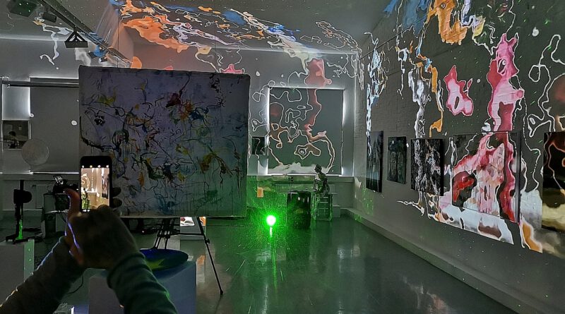 Im Anschluss an das Kunstcafé verwandelt sich der Kunstraum Gewerbepark-Süd in eine Projektionsfläche und Soundkulisse. Mit der Performance von Zoran Velinov startet das Lichterfest. Sechs Projektoren sorgen für eine beeindruckende Lichtershow, im Kleinen vergleichbar mit Projektionen in den aufgelassenen Steinbrüchen von Les Baux-de-Provence oder Multimedia-Installationen im Gasometer Oberhausen. Licht und Farbe beeindrucken den Künstler Velinov genauso wie das Thema „Universum“, das ihn seit Kindertagen fasziniert.