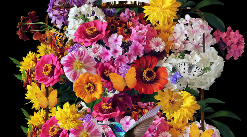 Besonders charakteristisch sind die Arbeiten, die Parfumflakons mit üppigen Blumenarrangements, Vögeln und symbolhaften Naturmotiven verbinden. So entsteht ein spannungsvoller Dialog zwischen Luxus und Natur, Materialität und Vergänglichkeit.